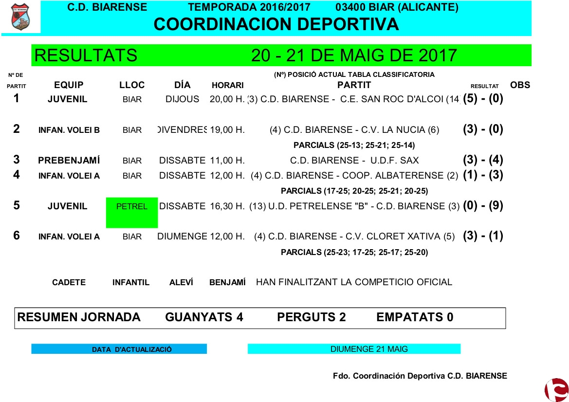 Nota: les equips de futbol, futbol sala, basquet han finalizat la competició