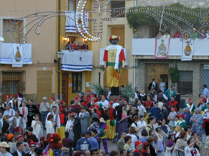 A las 18 horas. LA GUERRILLA, (MEDICIÓ DELS ESPIES). Embajada del Moro al Cristiano y BALL DELS ESPIES, con el traslado y colocación de la MAHOMA en el castillo.