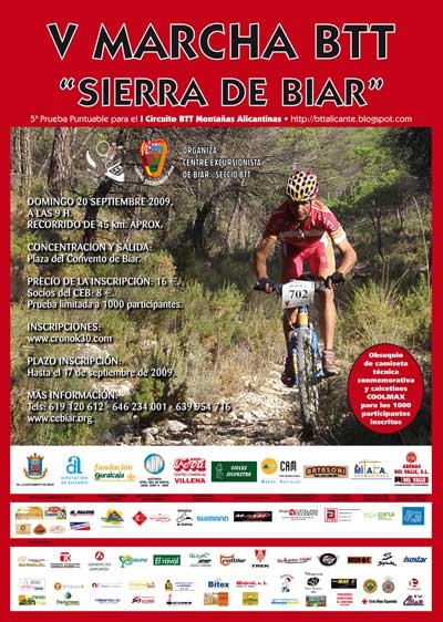 Ya tenemos aqui nuestros grandes eventos del Año 2009. V Marcha BTT Sierra de Biar y La XXXVI Reunion Y Marcha Nacional de Montañeros Veteranos de la Federacion Española de Deportes de Montaña y Escalada.