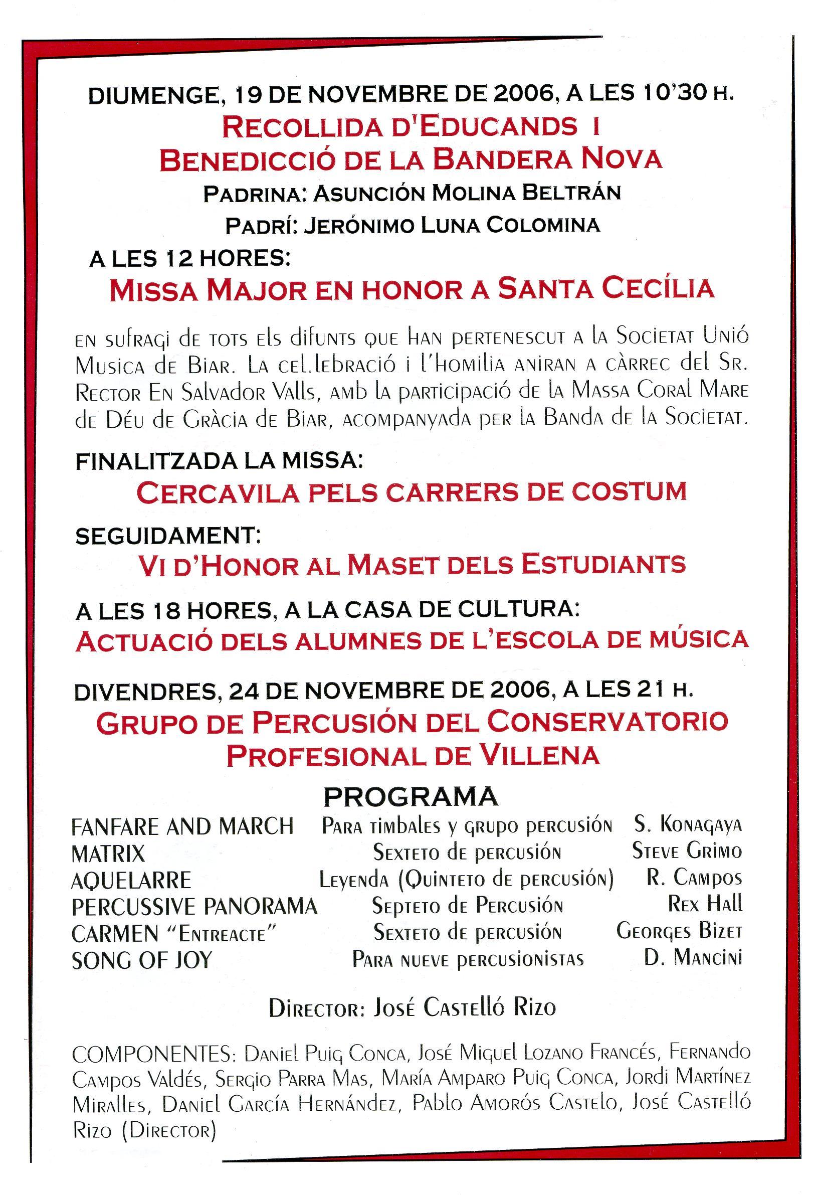 Con motivo de la Festividad de Santa Cecilia, la Sociedad Unión Musical Biarense organiza la XXI SEMANA DE MÚSICA VILA DE BIAR del 18 al 25 de noviembre.