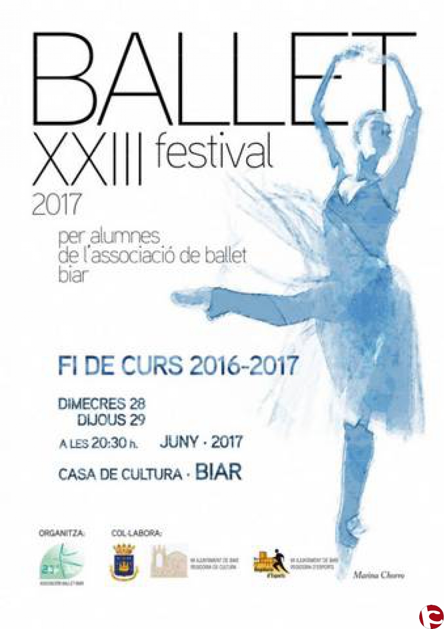 El dijous 29 de juny es va realitzar el XXIII Festival de ballet a càrrec de les alumnes de l’associació de Ballet, dirigides per Marina Chorro. L’actuació de final de curs va tindre lloc a les 20.30 h. a la Casa de Cultura de Biar, i per este motiu des de la Regidoria d’Esports de l’Ajuntament de Biar com a col·laboradora de l’esdeveniment ha volgut convidar al poble a assitir.