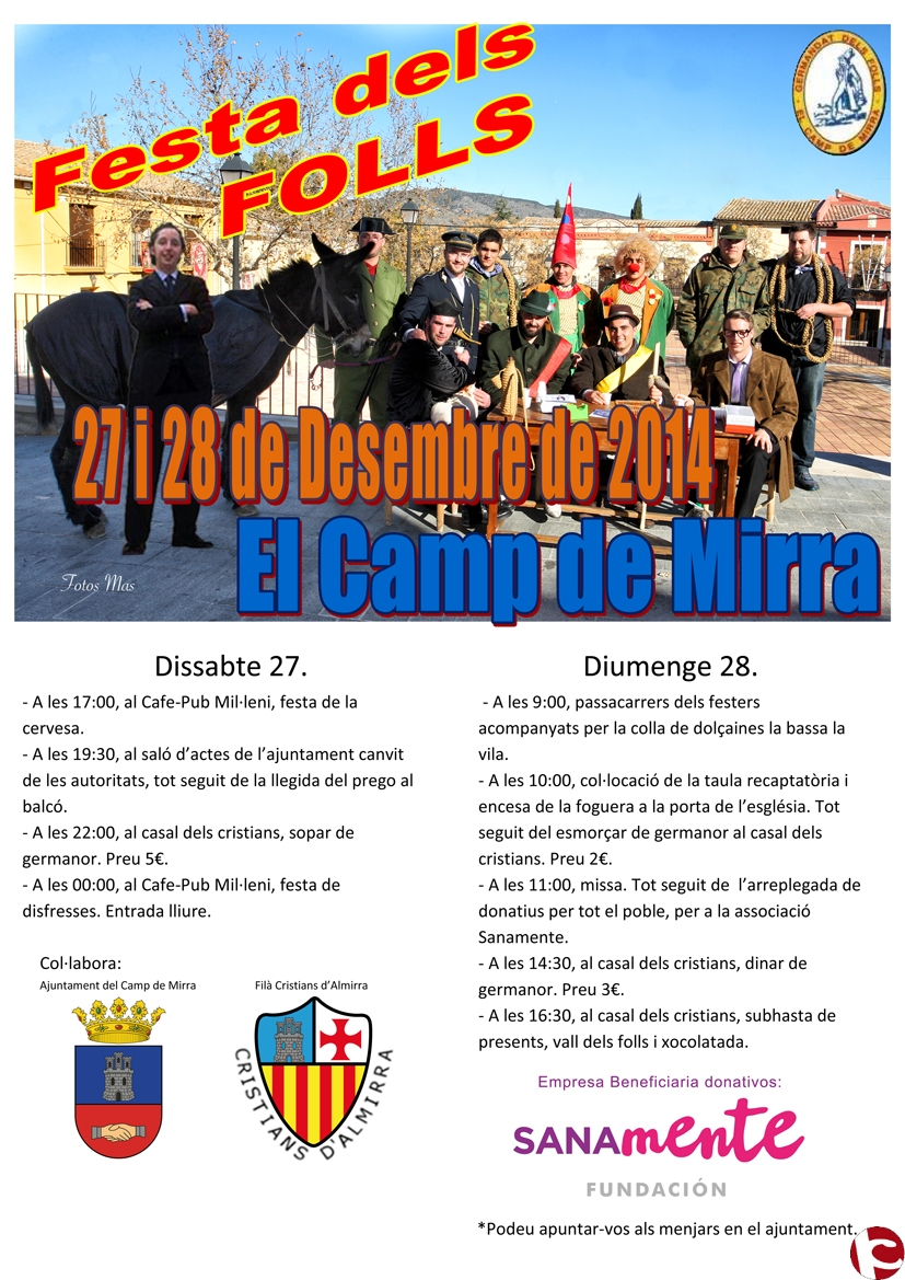 Un año más, fiel a su cita, tenemos la fiesta dels Folls. La tenemos prevista para los días 27 i 28 de Diciembre.