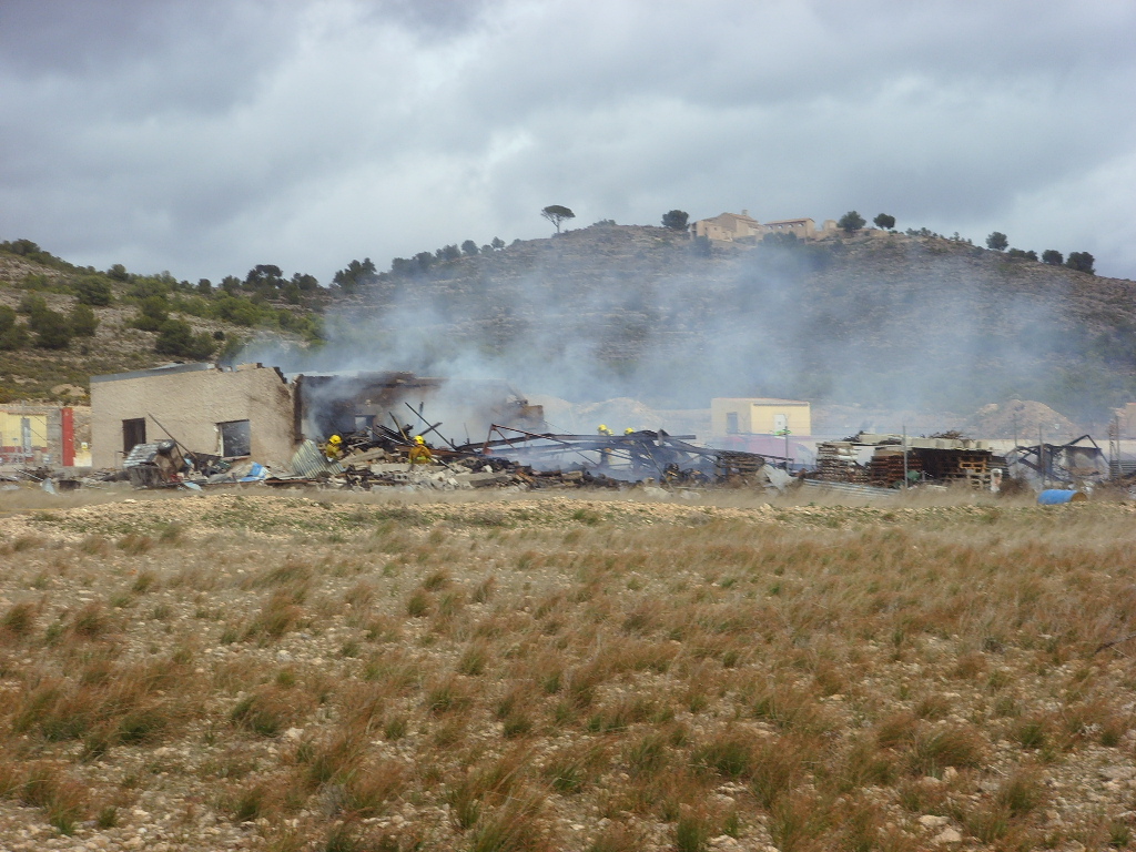 La nave quedó totalmente destruida y la explosión se escuchó en Baneixama, Biar, Canyada y Campo de Mirra. El viento pone en difucultad el trabajo de bomberos pero se tiene controlado.