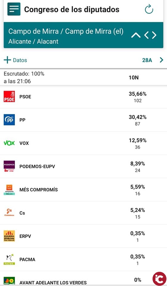 Resultados en Camp de Mirra : Elecciones Generales 10N