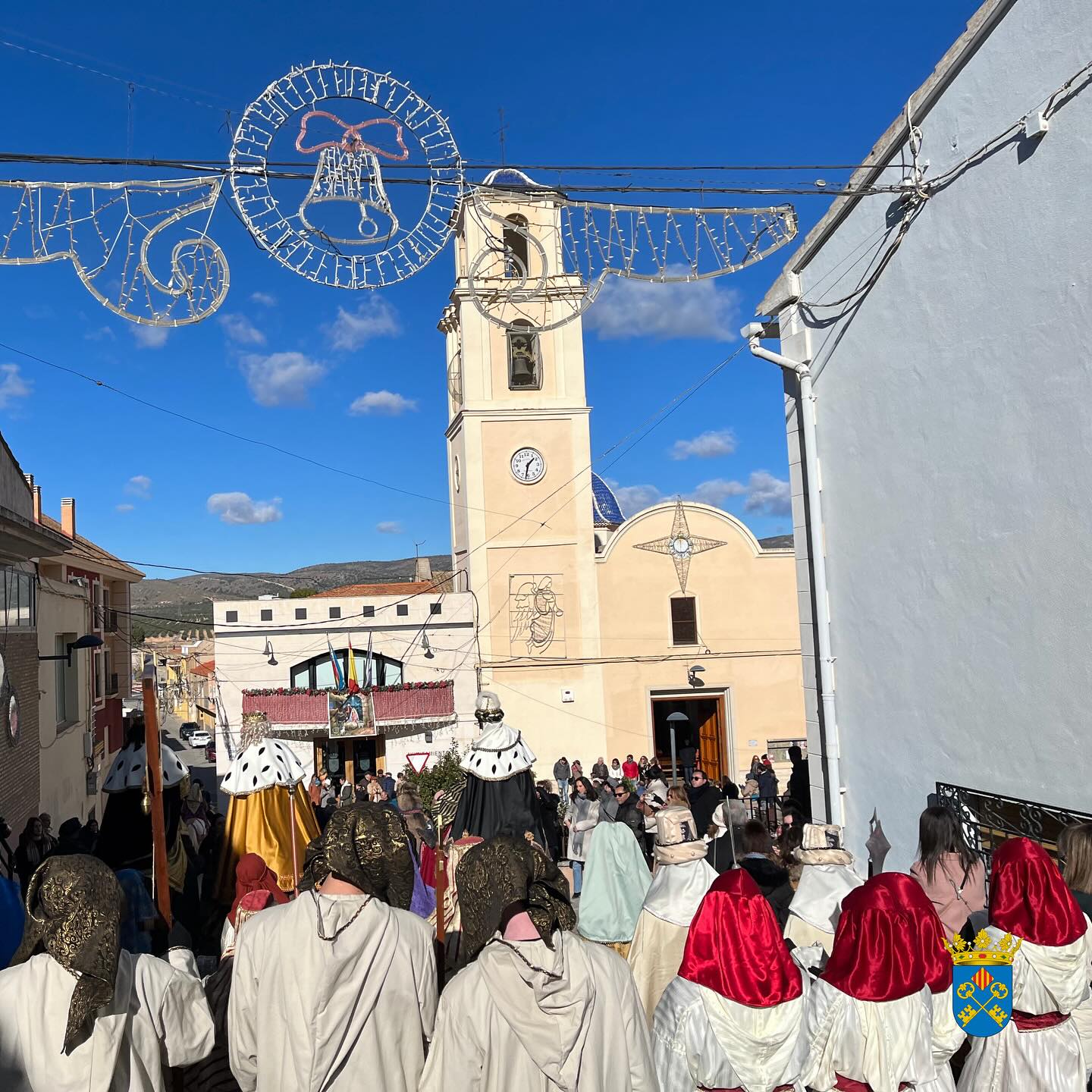 A las 9:45 Pasacalle a cargo de la Sociedad Unión Musical de Cañada que acompañan a los miembros de la Corporación Municipal, autoridades invitadas y representantes del Patronato de Reyes Magos de Cañada a las faldas del monte «Sant Major» situado en la avenida Reyes Magos (a espaldas del polideportivo municipal) donde da comienzo la representación.