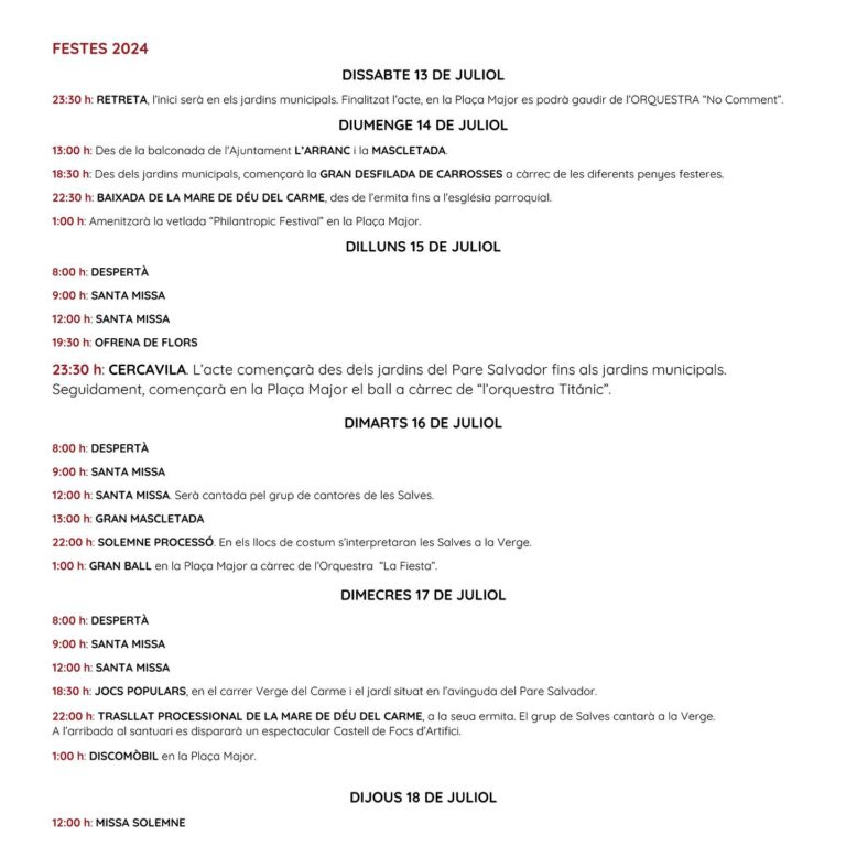 Especial Festes en honor a la Verge del Carmen i programa d´actes 2024