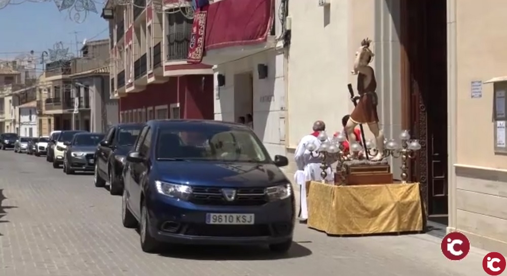 Las Reinas y Damas empezaban su desfile hasta la iglesia donde se sacó el Santo a la calle para la posterior bendición de los vehículos de la localidad.