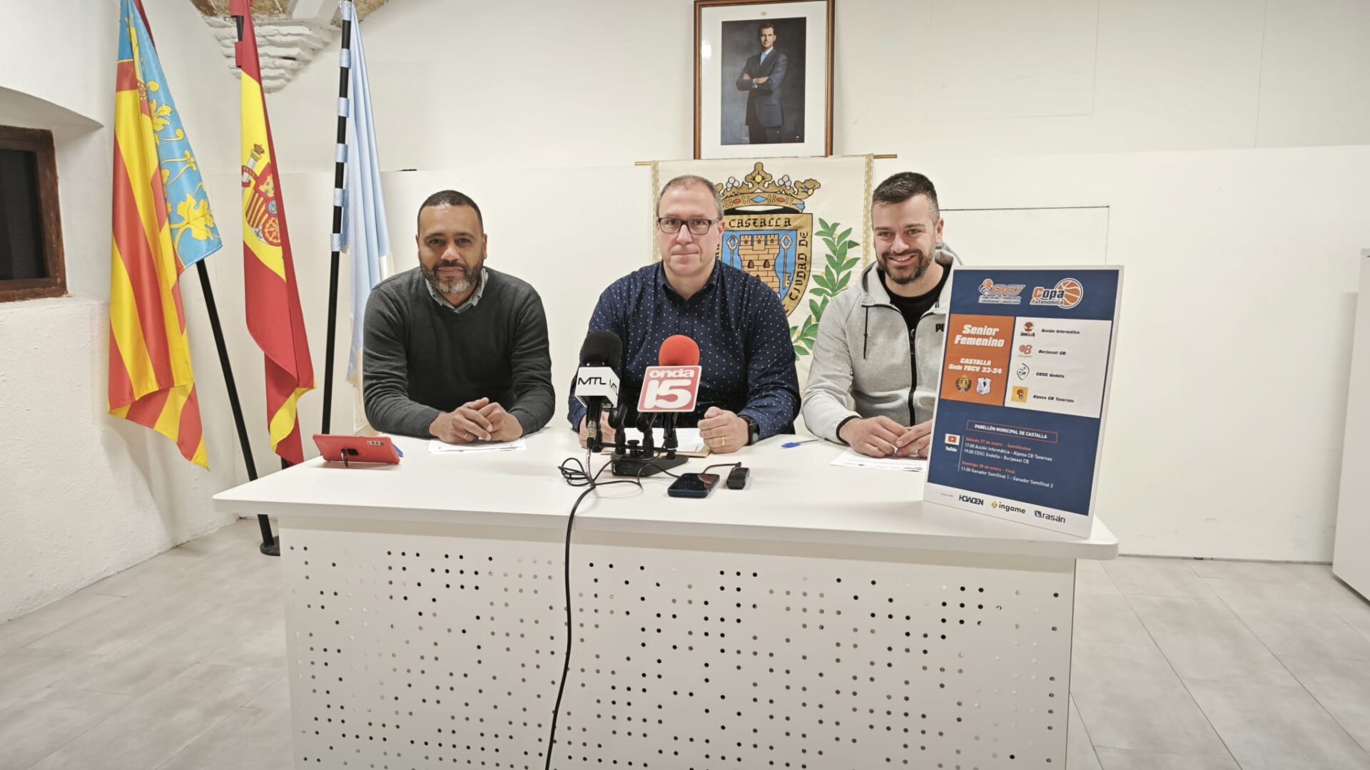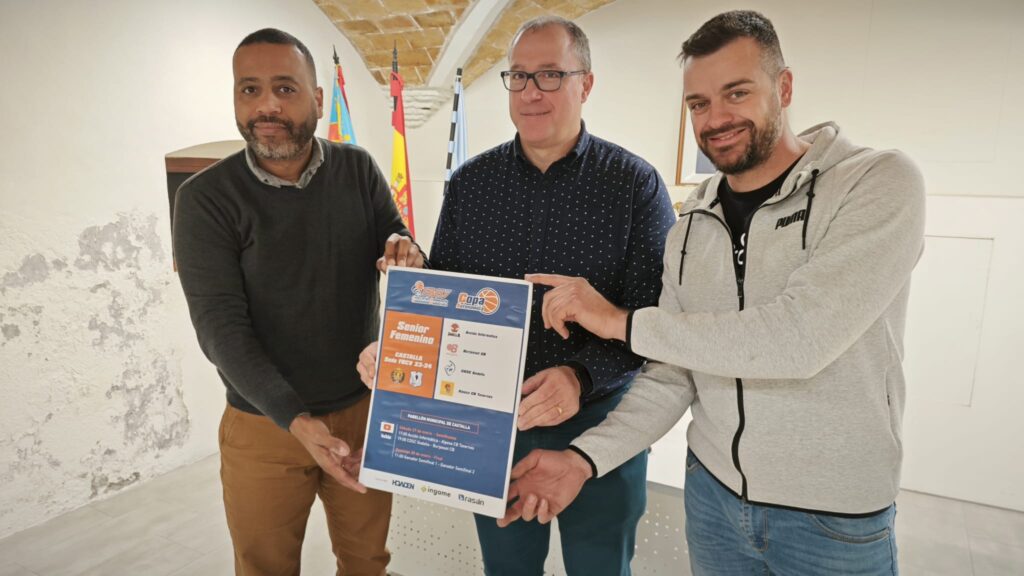 El Pavelló Municipal de Castalla serà seu este cap de setmana de les semifinals i final de la Copa Sènior Femenina de Bàsquet de la Comunitat Valenciana. Una cita que ha sigut possible gràcies al conveni subscrit entre l’Ajuntament castellut, la Federació de Bàsquet de la Comunitat Valenciana i el Club Bàsquet Castalla. Així ho han donat a conéixer este matí els representants d’estes entitats com són el regidor d’Esports de Castalla, José Miguel Payá Sepúlveda; el president del Club Bàsquet Castalla, Álvaro Bernabeu i el delegat a Alacant de la Federació de Bàsquet de la Comunitat Valenciana, Juan Miguel Sila.