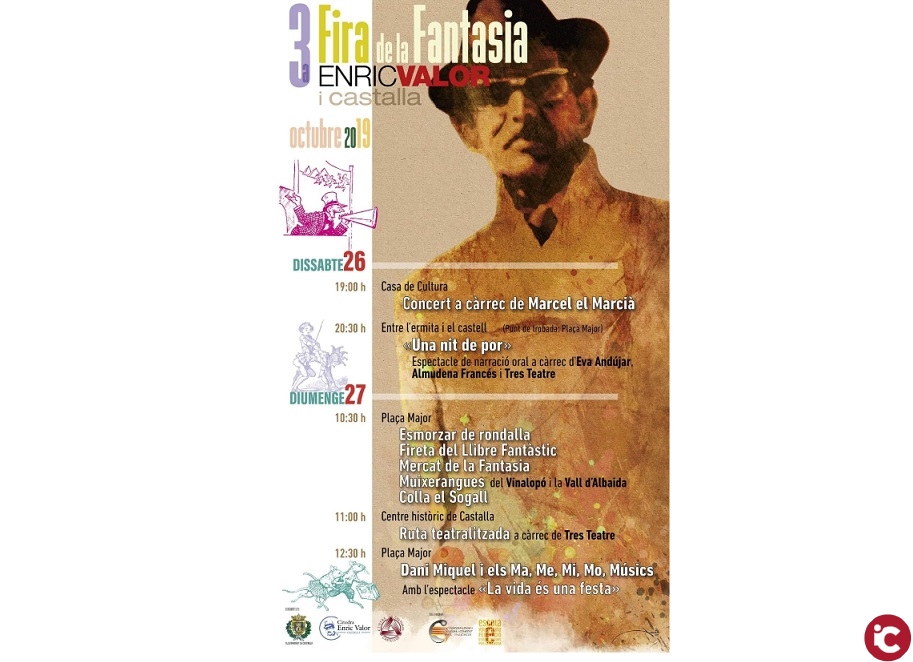Castalla, 23 d’ octubre 2019. L’Ajuntament de Castalla a través de la regidoria de Cultura celebrarà els pròxims dies 26 i 27 d’octubre la III edició de la “Fira de la Fantasia, Enric Valor i Castalla”. L’esdeveniment, que fa homenatge a l’escriptor nascut en el municipi, presenta una nodrida programació que omplirà de literatura i grans obres el barri antic de la capital de la Foia.