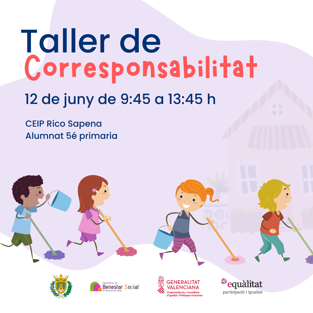 En primer lugar, tenemos el taller de corresponsabilidad para el alumnado del CEIP Rico Sapena, una acción prevista en el I Plan Municipal de Infancia y Adolescencia de Castalla. La corresponsabilidad implica que tanto hombres como mujeres asuman responsabilidades y tareas en igualdad de condiciones, tanto en el ámbito laboral como en el hogar y la familia. Así, la actividad tendrá lugar el 12 de junio de 2023 en las aulas del centro educativo durante cuatro sesiones, dirigida al alumnado de quinto de primaria.