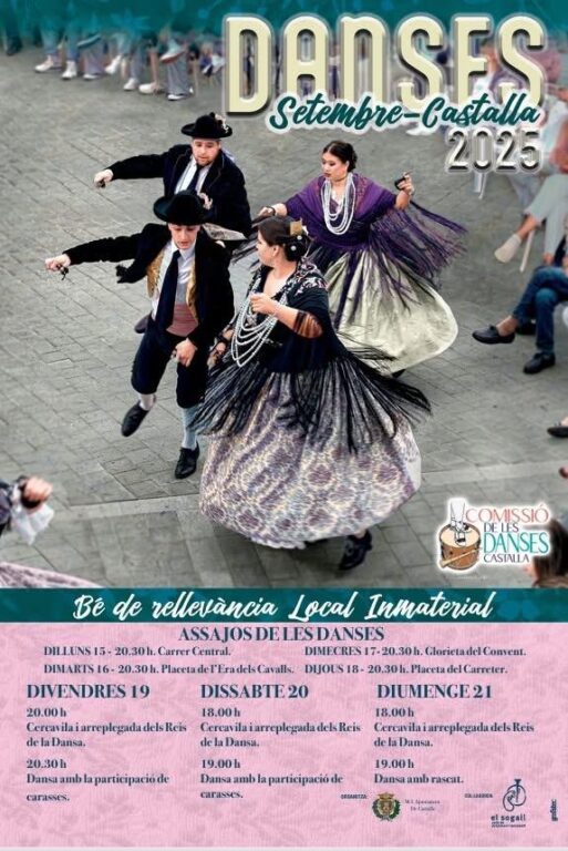 L’Ajuntament de Castalla i la Comissió de les Danses, conten amb la col·laboració d’El Sogall, per a organitzar un programa d’activitats que es durà a terme del 19 al 21 de setembre, amb assajos durant tota la setmana, danses i cercaviles.