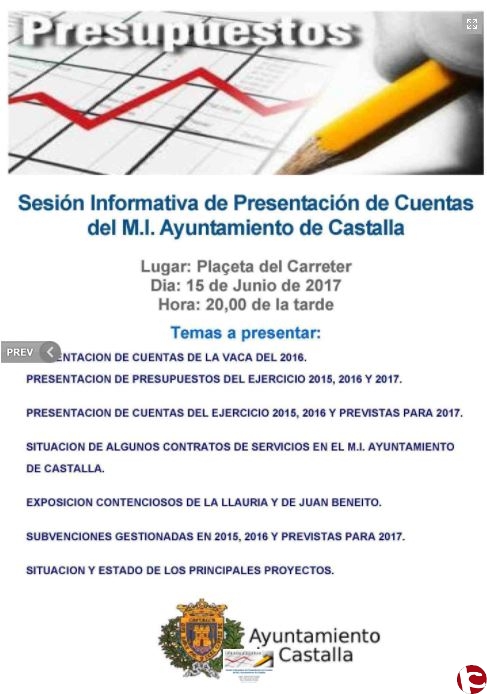 Esta tarde, acto público sobre el estado de las arcas municipales de Castalla