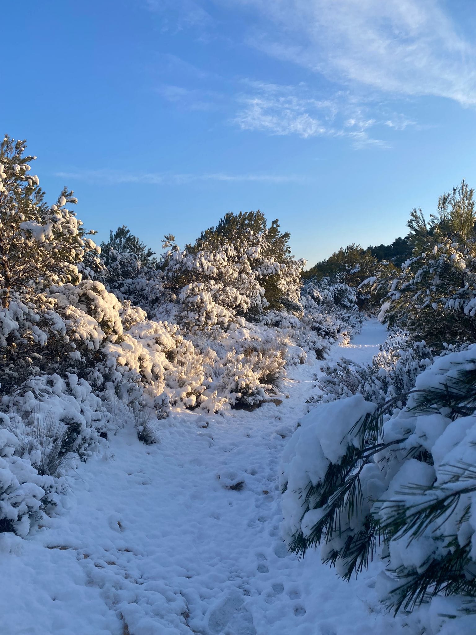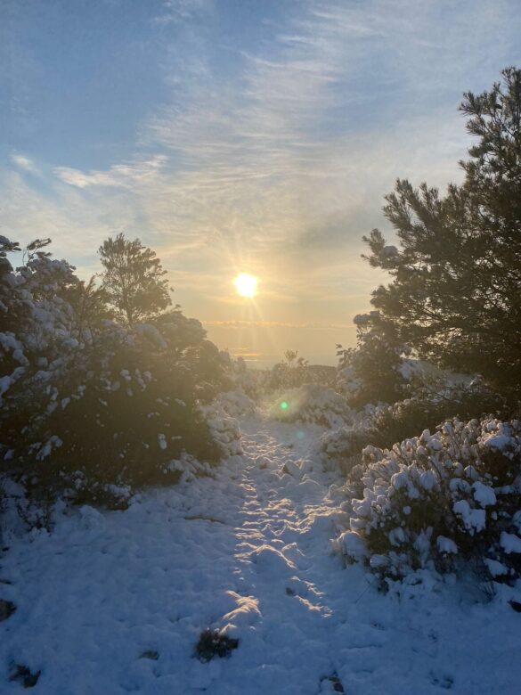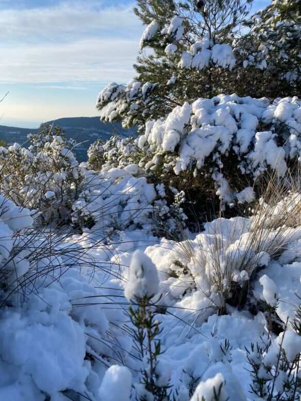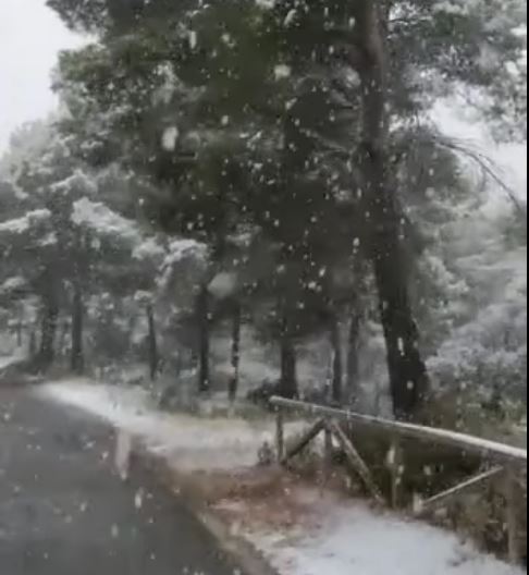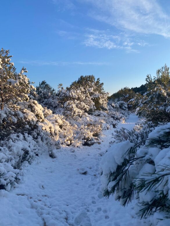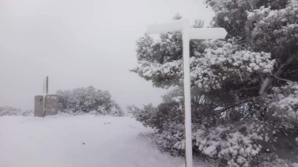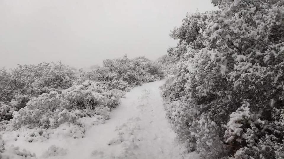 Fotografía 01/03/2023: nevada en el Despenyador (a unos 1260 m), en el término de Castalla, donde se han acumulados unos 5-10 cms (hasta última hora de la tarde).