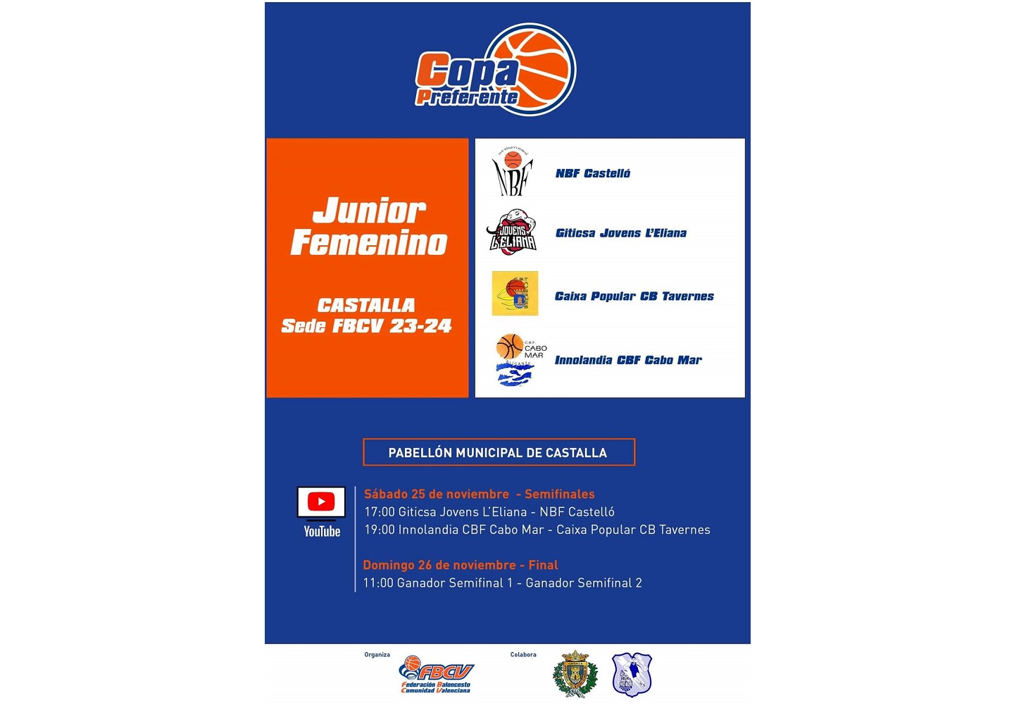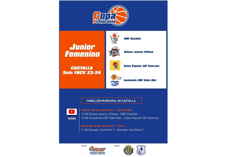 La Copa Preferent júnior femenina de la Federació de Bàsquet de la Comunitat Valenciana (FBCV) es disputa aquest cap de setmana a Castalla (25 i 26 de novembre), ja que la capital de La Foia és la seu de la present edició 2023-24.