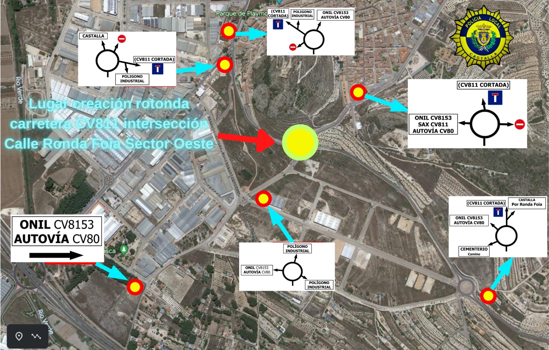 Aquest proper Dilluns 03 d’Abril, cap a les 07.00 hores del matí, es procedirà al tall al trànsit de vehicles de la carretera CV 811 Sax per a la construcció i creació d’una rotonda a la seva intersecció amb el Carrer Ronda Foia Sector Oest.