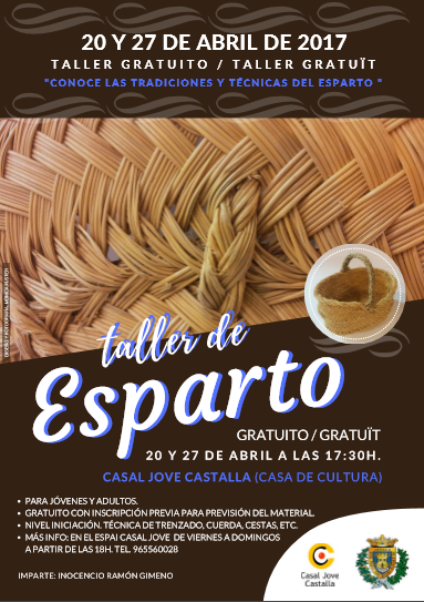 Taller de Esparto preparado desde el Casal Jove de Castalla y la Concejalía de Juventud y Educación para los días 20 y 27 de Abril de 2017.