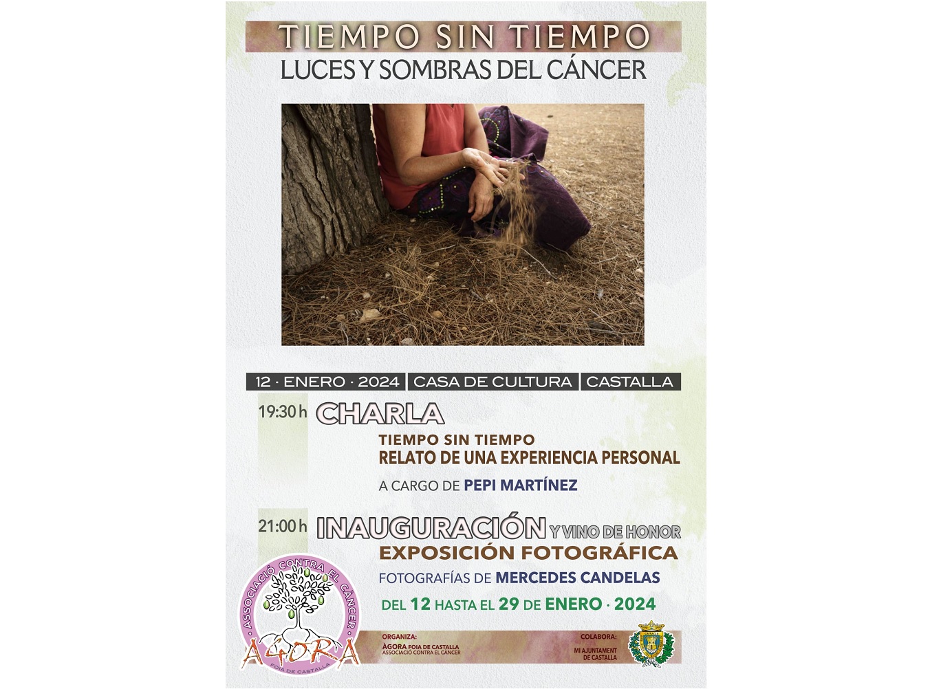 El próximo 12 de enero, a las 19:00 h, la Asociación Ágora-Foia de Castalla, acoge la conferencia “Tiempo sin tiempo”, en la que Pepi Martínez relatará su experiencia personal, en el proceso de su vivencia de luces y sombras del cáncer.