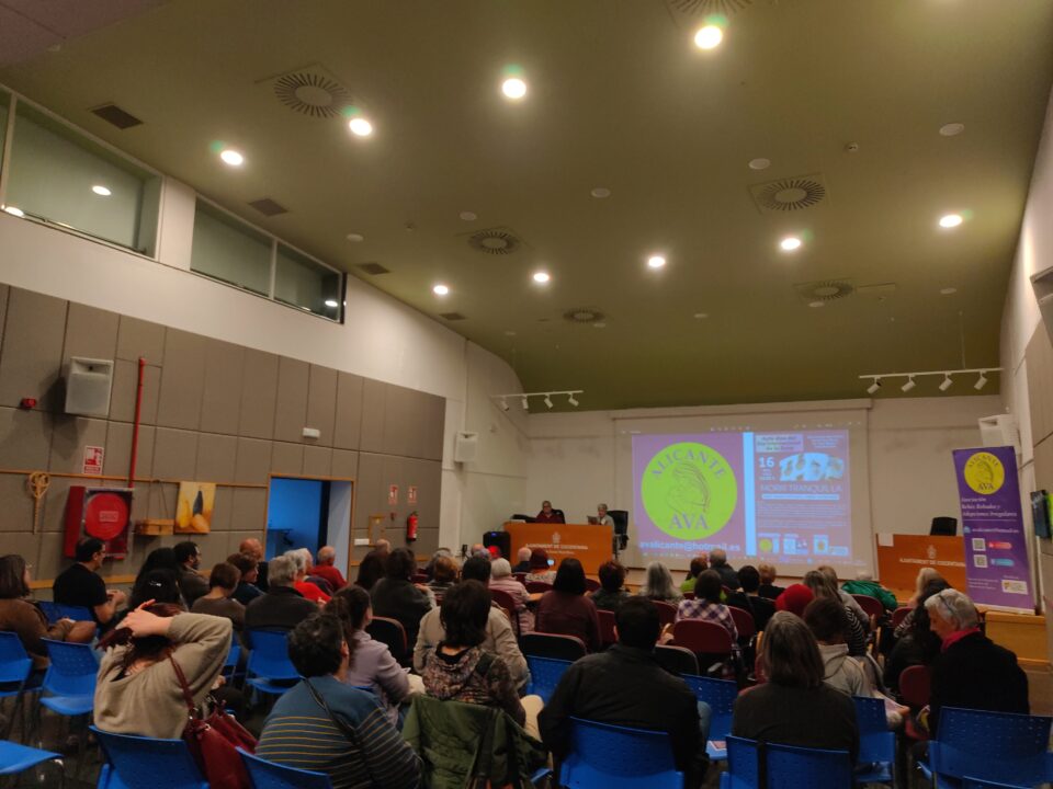 L’endemà, Paco Alarcon i Lola Pérez estava explicant als alumnes de 5è de l’IES Andreu Sempere el documental Morir Tranquil·la que l’havien projectat el dia anterior i informar de l’associació AVA d’Alacant.