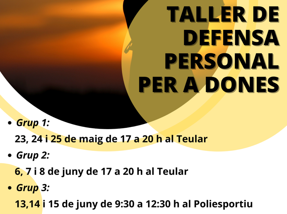 La regidoria de Benestar Social recupera els exitosos cursos de defensa personal per a dones. En esta ocasió són tres els grups que s’han disposat per tal de facilitar aquesta formació a totes les dones interessades, no hi ha edat mínima i màxima per participar i l’únic requisit per gaudir del taller és apuntar-se a l’enllaç que apareix al cartell.