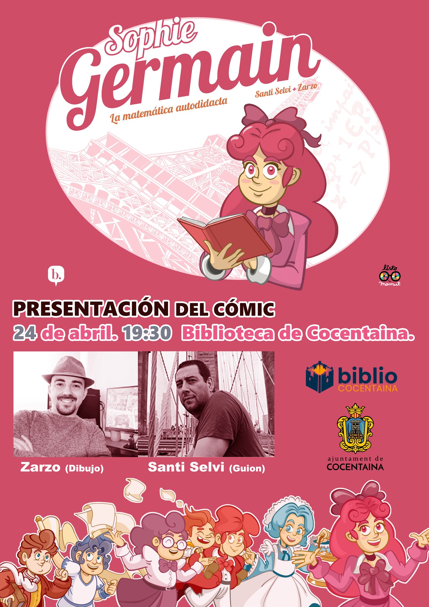 D’altra banda, el dijous 24 d’abril a les 19:30, la Biblioteca Municipal acull la presentació del còmic «Sophie Germain, la matemàtica autodidacta», a càrrec dels seus autors: Santi Selvi (guió) i Zarzo (dibuix).
