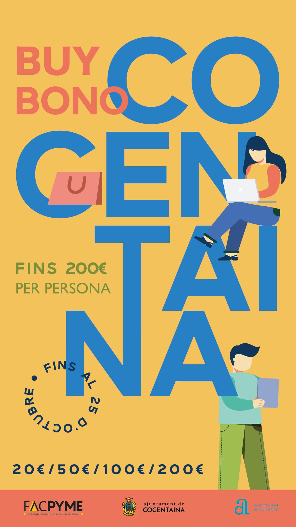 Un any més, Cocentaina suma una nova campanya de Bons Consum. En aquesta edició, es repartiran fins a 166.799,00 euros en bons per valor de 20, 50, 100 i 200 euros, els quals es podran adquirir de forma electrònica (accedint a www.cocentainabonoconsumo.es) o presencial (acudint amb el DNI el dilluns 2 d’octubre a l’Oficina Tècnica de l’Ajuntament de Cocentaina al C/Sant Cristòfol, 6, en horari de 9:30 a 14:30 i de 15:30 a 18:30).