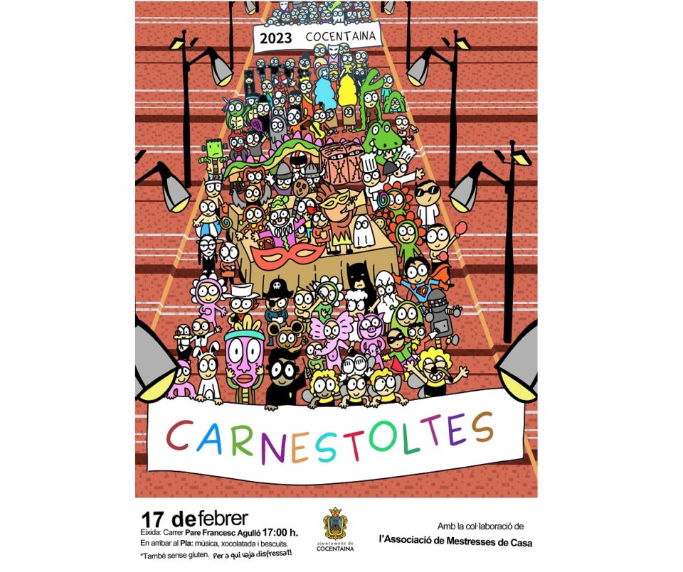 La Regidoria de Tradicions, en col·laboració amb els centres educatius de Cocentaina i amb les Mestresses de Casa, organitza la desfilada de Carnestoltes. Recordem que és la primera que s’organitza després de la pandèmia, ja que l’any passat els centres escolars encara tenien restriccions i es va haver de realitzar als recintes educatius.