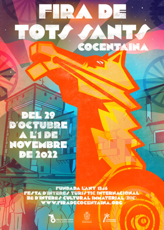 Cocentaina, 30 de setembre de 2022. La Fira de Tots Sants de Cocentaina 2022 ha donat el tret d’eixida aquesta nit, amb el descobriment del cartell anunciador. Comença el compte enrere per a la celebració de la 676 edició, amb què el certamen torna al seu format original prepandèmia, els dies 29, 30 i 31 d’octubre i 1 de novembre.