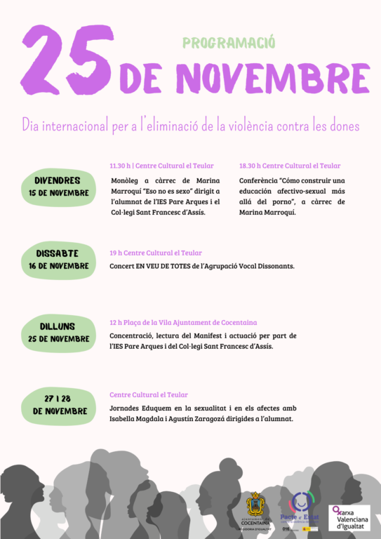 L’Ajuntament de Cocentaina, un any més, presenta la seua programació especial amb motiu de la celebració del 25-N: Dia Internacional per l’Eliminació de la Violència contra les Dones.