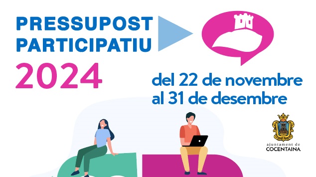 El Pressupost Participatiu és un mecanisme de participació i gestió municipal a través d’un procés democràtic en el qual la ciutadania decideix de manera directa a què es destina una part del pressupost municipal. La participació en el procés està oberta a totes les persones majors de 16 anys i empadronades a Cocentaina.