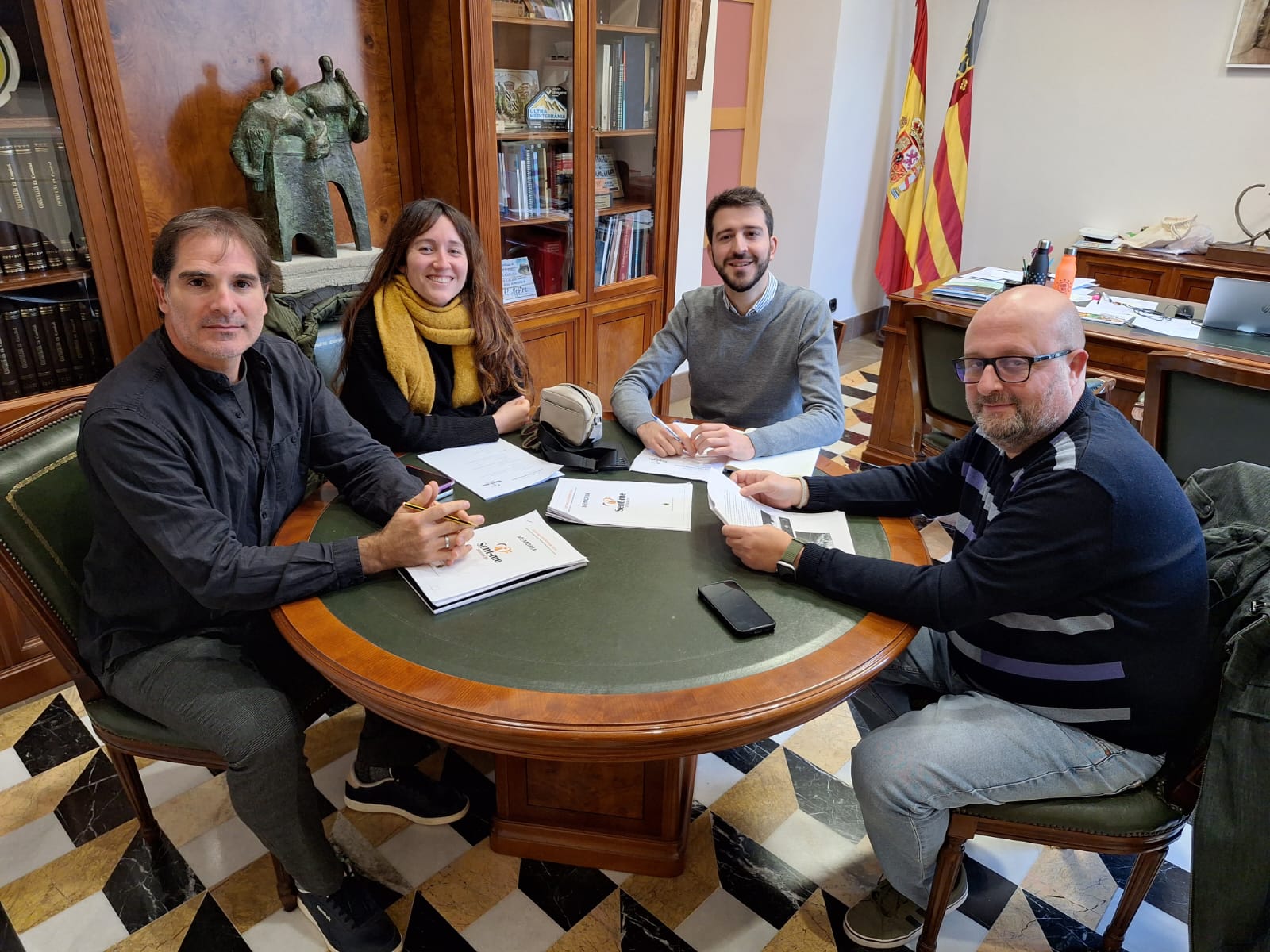 És el moment de traure conclusions del Sent-me 2024 i, per aquest motiu, ha tingut lloc una reunió de treball amb els màxims responsables del mateix: Ignacio García-Vidal, director artístic del Sent-me; Miguel Ángel Raigal, tècnic de Joventut i coordinador de Cultura; Berta Iñíguez, regidora de Cultura; i Jordi Pla, alcalde de Cocentaina.