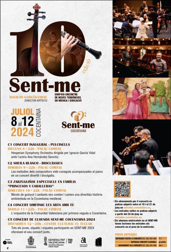 Berta Iñíguez, regidora de Cultura, ha assegurat que «Cocentaina fa una dècada que és l’epicentre de la música i la cultura al mes de juliol, on el pati del Palau Comtal ha estat testimoni d’un bon grapat de concerts i d’artistes d’un talent estratosfèric. Enguany, estem encara més contents perquè tornem a oferir els cursos de formació; i això és sinònim que torna l’essència del Sent-me. I és que un dels nostres objectius principals és que els alumnes adquirisquen, a banda d’una formació musical, una formació humana. Malgrat els temps que ens ha tocat viure, protagonitzats per guerres i violència, la cultura sempre ha de ser la resposta».
