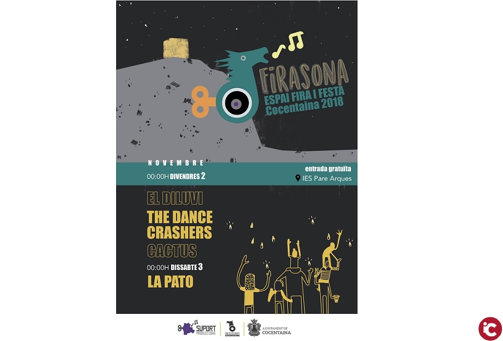 En aquesta ocasió, el FiraSona se celebrarà durant les nits del divendres 2 i dissabte 3 de novembre, en un punt més allunyat de la Fira com és lInstitut Pare Arques, per a evitar al màxim molestar als veïns i veïnes del municipi. En el cartell d’aquest any trobem dues propostes molt interessants. El divendres dia 2, a partir de la mitjanit, s’oferirà un concert amb els grups El Diluvi, The Dance Crashers i Cactus. I per al dissabte dia 3, també a la mitjanit, l’orquestra La Pato serà l’encarregada de posar la música i la festa a la jornada. Com tots els anys, l’entrada al recinte és totalment gratuïta.