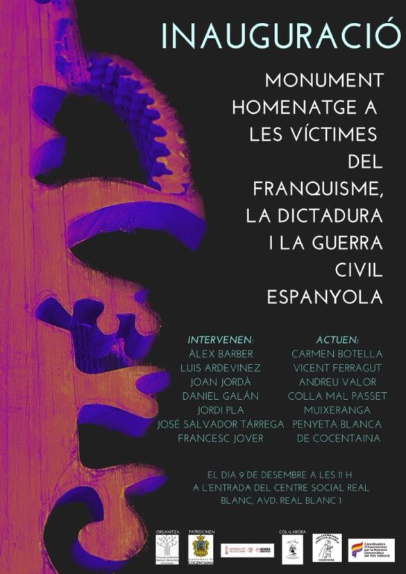 Aquest mes de desembre és un mes especial. El Fòrum per la Memòria Històrica i Democràtica de Cocentaina veu, finalment, la llum amb un projecte que sols trobava endarreriments. La instal·lació d’un monument per tal d’honrar la memòria d’aquelles  persones que van ser víctimes de la Guerra Civil i de la posterior dictadura franquista és una iniciativa ciutadana, participativa i que ha transcendit processos locals i autonòmics. Un esforç que a partir d’aquest 9 de desembre la capital del Comtat podrà lluir i mostrar de