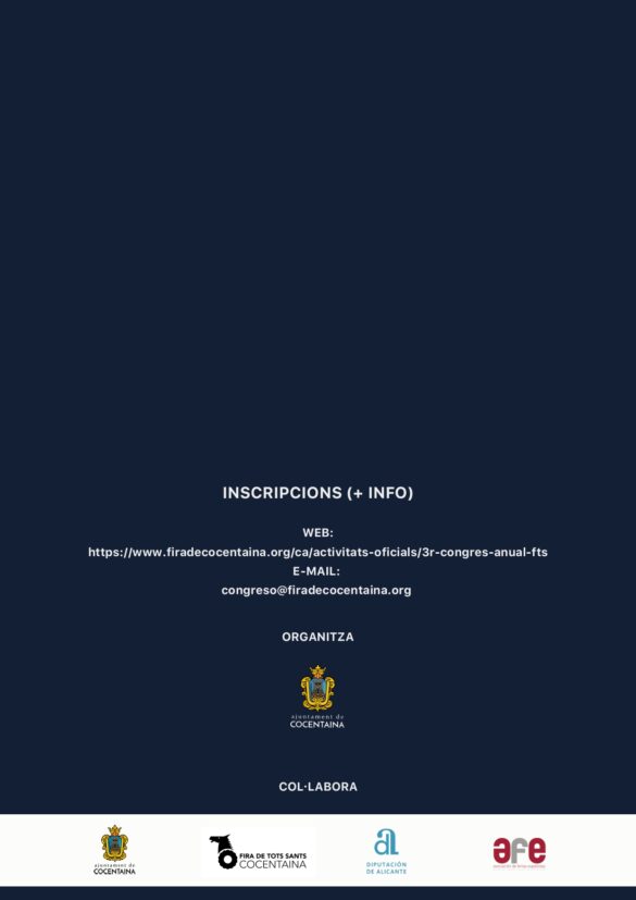Cocentaina, 15 de març de 2023. El III Congrés Anual Fira de Tots Sants, que se celebrarà del 21 al 23 de març de 2023, a Cocentaina, compta amb un nodrit i variat programa dirigit als diferents sectors i professionals presents en el tradicional certamen. Cadascuna de les jornades està orientada als diferents sectors que conformen l’esdeveniment o veuen en ell una oportunitat laboral, professional o empresarial. Des de l’educatiu; amb universitats, cicles formatius i postgraus, passant pels propis expositors oficials, fins a les empreses i entitats encarregades de la gestió i organització de l’esdeveniment. Ponències que tenen com a objectiu continuar professionalitzant el certamen i adaptar-lo a les tendències de futur sense perdre la seua essència tradicional.