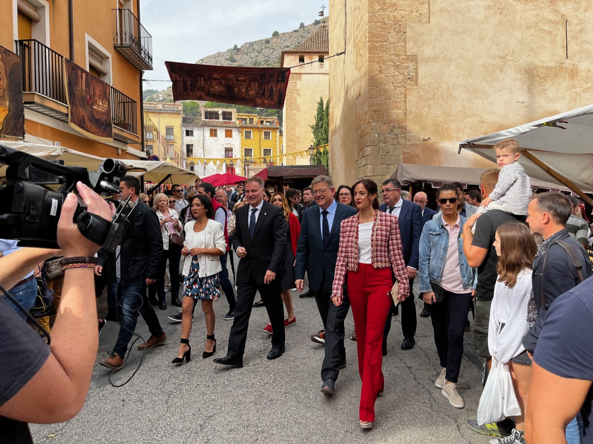 Cocentaina ha inaugurat aquest matí la 676 edició de la seua tradicional Fira de Tots Sants, amb la qual el certamen ha tornat a la normalitat després de la pandèmia i al seu format original d’un cap de setmana, els dies 29, 30, 31 d’octubre i 1 de novembre. El Palau Comtal ha sigut escenari, una vegada més, de la lectura del Privilegi real concedit per Pere IV El Cerimoniós en 1346 a la Vila de Cocentaina. Un honor que en aquesta ocasió ha recaigut en el reconegut empresari tèxtil i gerent del Grup Aquaclean, Rafael Pascual, qui ha fet una emotiva lectura del tradicional text. Tot seguit, el president de la Generalitat Valenciana, Ximo Puig ha procedit a tallar la cinta i l’alcaldessa Mireia Estepa ha declarat inaugurada la Fira de Tots Sants.