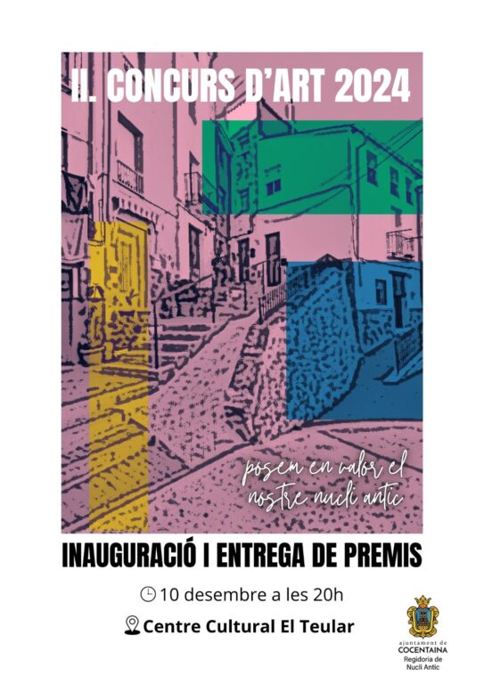 El jurat del II Concurs de Pintura de Nucli Antic, format per Roger Garrido Cortés, en representació de l’Ajuntament de Cocentaina, i dos artistes plàstics, Borja Molina i Paula Dénia, es reunien el dimecres 20 de novembre per a valorar les 25 obres que s’havien presentat a concurs, destacant l’alta qualitat artística, així com l’alta participació.