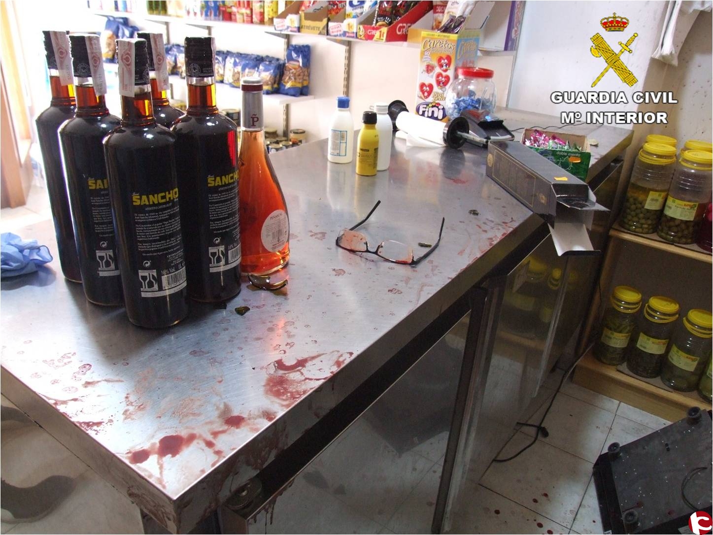 El autor del robo cogió una botella de vino de la tienda, de cristal, con la que golpeó violentamente al perjudicado en la cabeza, llegando éste a perder el conocimiento y logrando huir del lugar el autor con el cajetín de la caja registradora, con una recaudación de unos 400 euros aproximadamente.