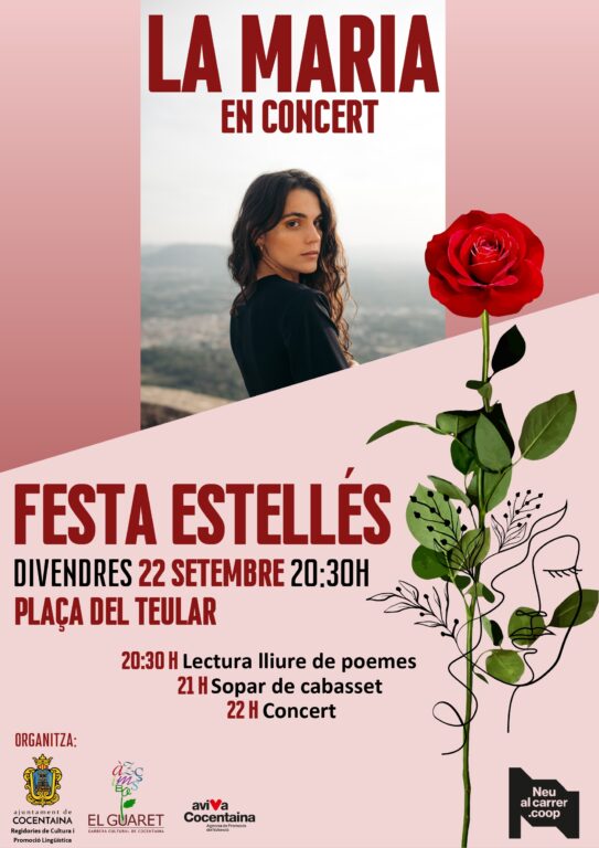 Un any més, la Festa Estellés torna a Cocentaina. Tindrà lloc el divendres 22 de setembre a les 20:30 a la Plaça del Teular gràcies a la col·laboració i el treball de la Garbera Cultural El Guaret i l’Ajuntament de Cocentaina.