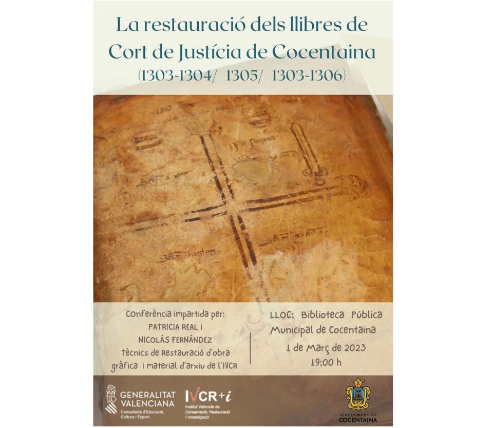 Amb motiu de la restauració dels importants llibres de Cort del Justícia per part de l’Institut Valencià de Conservació, Restauració i Investigació (IVCR+i), des de la Regidoria de Cultura de l’Ajuntament de Cocentaina, s’ha organitzat una conferència per parlar-ne del procés de restauració d’aquests documents d’alt valor històric i documental relatius a processos, sentències i competències judicials relacionades amb la figura del Justícia.