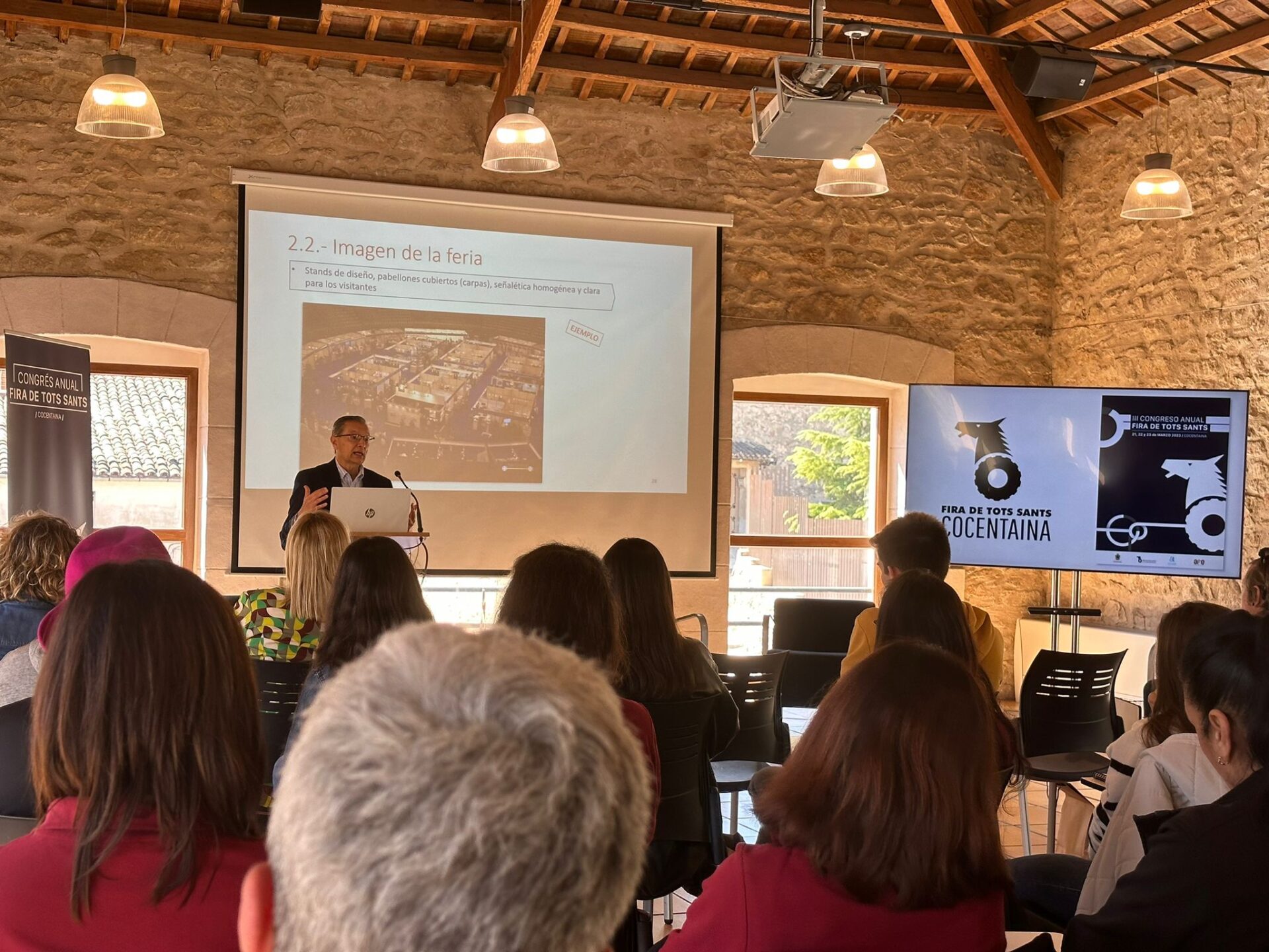 Cocentaina, 28 de març de 2023. El III Congrés de Fira de Tots Sants de Cocentaina ha tancat la seua tercera edició amb grans valoracions i noves línies de treball per a continuar millorant el certamen. Més de 100 participants de manera presencial i en streaming van acudir a les dues primeres jornades orientades a expositors i organitzadors. Comunicació, disseny, publicitat, infraestructures, gestió de residus, accessibilitat i sostenibilitat, van ser alguns dels temes que han centrat les ponències oferides enguany.