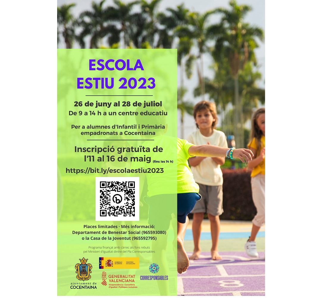 Les places són limitades, ja que sols hi ha 50 i la inscripció es pot fer accedint al formulari del QR del cartell o a: http://bit.ly/escolaestiu2023. Les dates per fer la inscripció van de l’11 al 16 de maig, sent obligatori emplenar tots els camps i aportar la documentació requerida.