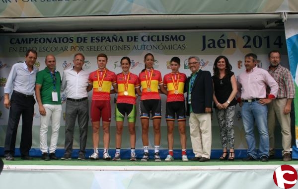 Las pruebas de carrera en línea cadete cerraban el programa del Campeonato de España de ciclismo en edad escolar por Autonomías en Jaén. Las féminas eran las primeras en afrontar los 50,36 km y tas la salida neutralizada partían por la carretera Bailén Madrid hacia Mancha Real. La subida al alto de las Siete Pilillas y su peligroso descenso se convertían en el juez de la prueba y rompía el pelotón. Un tiempo de 1.27´40″ empleó la valenciana Sandra Alonso en cruzar al sprint la línea de meta en primera posición. La gallega Irene Trabazo fue plata y la navarra Maialen Aramendia bronce con el mismo tiempo que la cuarta clasificada la valenciana Sofía Rodríguez. A 4 llegaron la balear Iurani Blanco, Miriam Gardachal y la catalana Berta Orozco. Octava fue la castellanoleonesa Isabel Martín a 2´12 el mismo tiempo que la vasca Dolores Gómez, la castellanoleonesa Sara Martín. La mejor andaluza fue Lucía Polo (14ª) con el mismo crono.