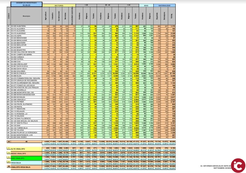 CCOO Vinalopó-Vega disminuye ha elaborado un informe con relación a las personas registradas en el desempleo, de acuerdo con los datos facilitados por el SEPE y LABOR. Al finalizar el 30 de Septiembre el resultado es el siguiente respecto al mes anterior:
