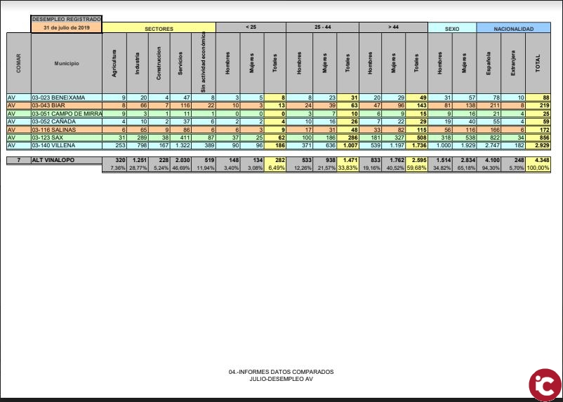 CCOO Vinalopó-Vega Baja ha elaborado un informe con relación a las personas registradas en el desempleo, de acuerdo con los datos facilitados por el SEPE y LABORA-SERVEF. Al finalizar el 31 de Julio el resultado es el siguiente respecto al mes anterior: