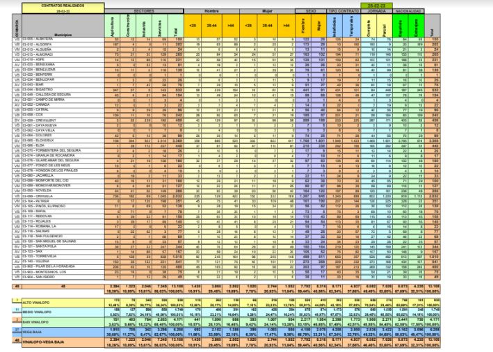 En cada uno de estos informes se pueden analizar las situaciones de los contratos, por Comarcas y Municipios.