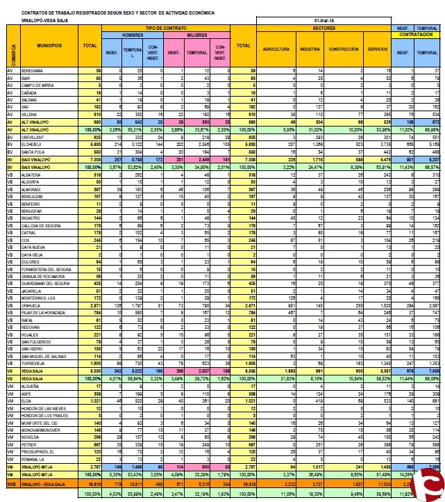 Datos de la contratación realizada en el mes de Marzo por CCOO Vega Baja y Vinalopó