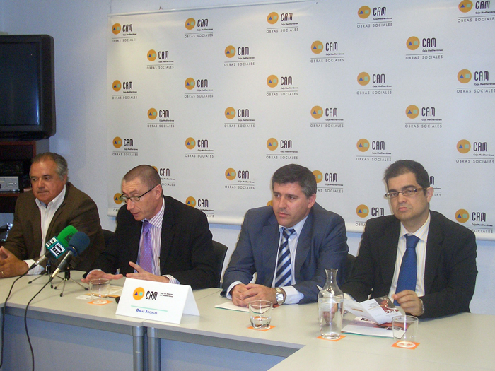Jorge Moreno, director de zona de Caja Mediterráneo; Jorge Hernández, gestor del Aula CAM de Alicante, así como los forenses Fernando Rodes y Carlos E. Monera, coordinadores del encuentro programado por Obras Sociales de Caja Mediterráneo, han presentado esta mañana los contenidos y objetivos de esta jornada.