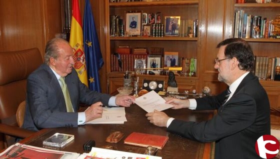 Fuente: EL PAIS. El presidente del Gobierno, Mariano Rajoy, ha anunciado la decisión del Rey de abdicar del trono, lo que el propio don Juan Carlos comunicará a la nación en las próximas horas. El Monarca, aquejado por un largo proceso de debilitamiento de su salud, estudiaba desde hacía tiempo la posibilidad de ceder el trono al Príncipe Felipe.
