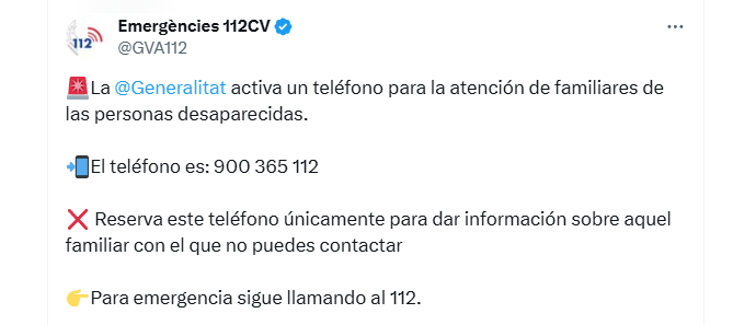 El presidente de la Generalitat, Carlos Mazón, ha subrayado la importancia de utilizar este número exclusivamente para reportar personas desaparecidas y no para emergencias, para las cuales sigue vigente el 112. Durante una comparecencia en el Centro de Coordinación de Emergencias, Mazón ha insistido en que este número es el único canal válido para estas situaciones y ha pedido a la ciudadanía que no difunda ni haga caso de bulos en redes sociales.