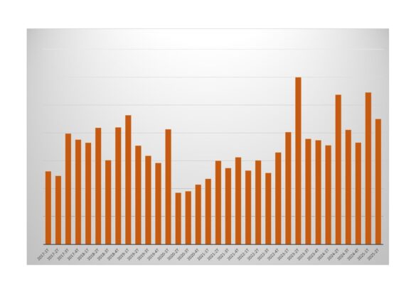“Los datos nos muestran una cifra elevada de viviendas iniciadas, pero como se puede observar en el histórico de datos, supone una ralentización tanto en comparación con el primer trimestre de este año con un descenso de un 17% sobre las 2.727 viviendas de ese periodo, como con el segundo trimestre de 2024 en el que se iniciaron 2.689 viviendas con lo que la caída es de un 16%”, ha declarado Cristina Bordera, presidenta del Colegio Oficial de la Arquitectura Técnica de Alicante.
